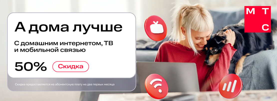 Подключайте тарифные планы МТС со скидкой 50%. Высокоскоростной домашний интернет, цифровое ТВ, KION и мобильная связь по акции для вашего дома